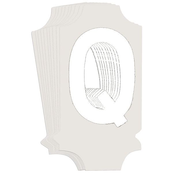 Letter Label, Adhesive Type Permanent Adhesive, Application General Identification, APWA Compliant Color No, Background Color Not Applicable, Character Color White, Character Color Gradient Solid Color, Character Height 1 in, Character Outline Color Not Applicable, Character Type Letters, Characters Included Q, Die Cut Yes, Embossed No, Font Gothic, Includes (10) Labels, Indoor/Outdoor Usage Indoor/Outdoor, Letter Casing Uppercase, Material Polyester, Meets USCG Registration Guidelines No