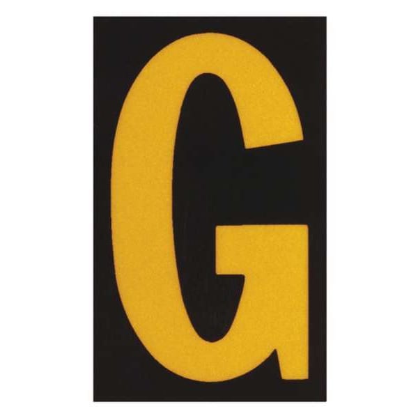 Letter Label, Adhesive Type Permanent Adhesive, Application Utility Plant Markings, APWA Compliant Color No, Background Color Black, Character Color Yellow, Character Color Gradient Solid Color, Character Height 2 1/2 in, Character Outline Color Not Applicable, Character Type Letters, Characters Included G, Die Cut Yes, Embossed No, Font Archivo Narrow, Includes (25) Labels, Indoor/Outdoor Usage Indoor/Outdoor, Letter Casing Uppercase, Material Retroreflective Sheeting