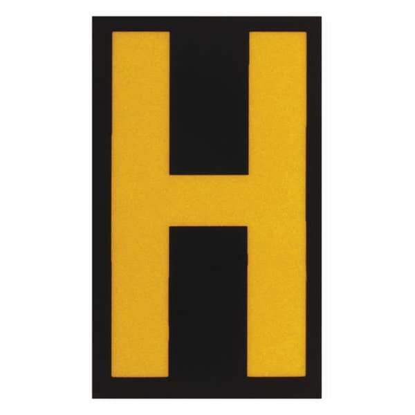 Letter Label, Adhesive Type Permanent Adhesive, Application Utility Plant Markings, APWA Compliant Color No, Background Color Black, Character Color Yellow, Character Color Gradient Solid Color, Character Height 2 1/2 in, Character Outline Color Not Applicable, Character Type Letters, Characters Included H, Die Cut Yes, Embossed No, Font Archivo Narrow, Includes (25) Labels, Indoor/Outdoor Usage Indoor/Outdoor, Letter Casing Uppercase, Material Retroreflective Sheeting