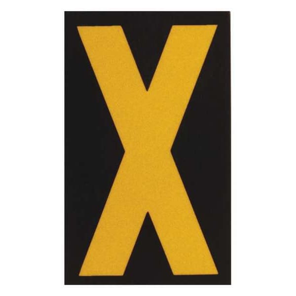 Letter Label, Adhesive Type Permanent Adhesive, Application Utility Plant Markings, APWA Compliant Color No, Background Color Black, Character Color Yellow, Character Color Gradient Solid Color, Character Height 2 1/2 in, Character Outline Color Not Applicable, Character Type Letters, Characters Included X, Die Cut Yes, Embossed No, Font Archivo Narrow, Includes (25) Labels, Indoor/Outdoor Usage Indoor/Outdoor, Letter Casing Uppercase, Material Retroreflective Sheeting