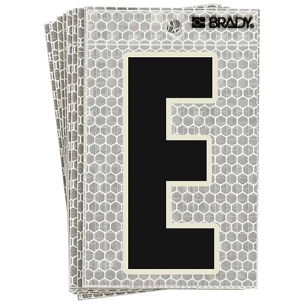 Letter Label, Adhesive Type Permanent Adhesive, Application General Identification, APWA Compliant Color No, Background Color Silver, Character Color Black/Green, Character Color Gradient Solid Color, Character Height 3 in, Character Outline Color Not Applicable, Character Type Letters, Characters Included E, Die Cut Yes, Embossed No, Font Archivo Narrow, Includes (10) Labels, Indoor/Outdoor Usage Indoor/Outdoor, Letter Casing Uppercase, Material Retroreflective Sheeting