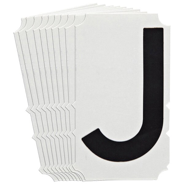 Letter Label, Adhesive Type Permanent Adhesive, Application General Identification, APWA Compliant Color No, Background Color Not Applicable, Character Color Black, Character Color Gradient Solid Color, Character Height 4 in, Character Outline Color Not Applicable, Character Type Letters, Characters Included J, Die Cut Yes, Embossed No, Font Gothic, Includes (10) Labels, Indoor/Outdoor Usage Indoor/Outdoor, Letter Casing Uppercase, Material Polyester, Meets USCG Registration Guidelines No