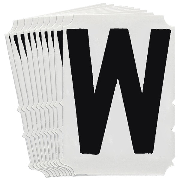 Letter Label, Adhesive Type Permanent Adhesive, Application General Identification, APWA Compliant Color No, Background Color Not Applicable, Character Color Black, Character Color Gradient Solid Color, Character Height 4 in, Character Outline Color Not Applicable, Character Type Letters, Characters Included W, Die Cut Yes, Embossed No, Font Gothic, Includes (10) Labels, Indoor/Outdoor Usage Indoor/Outdoor, Letter Casing Uppercase, Material Polyester, Meets USCG Registration Guidelines No