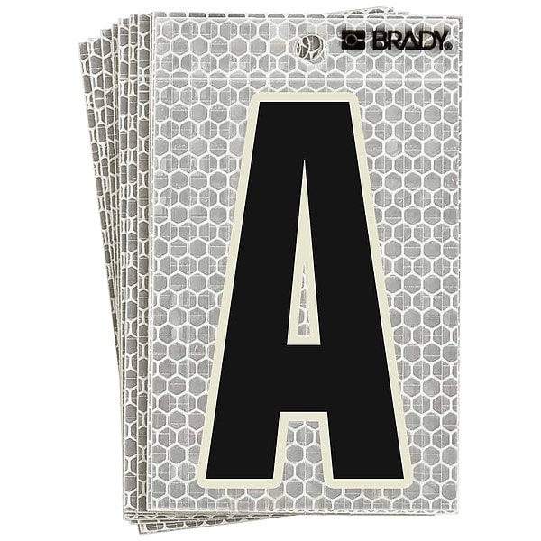 Letter Label, Adhesive Type Permanent Adhesive, Application General Identification, APWA Compliant Color No, Background Color Silver, Character Color Black/Green, Character Color Gradient Solid Color, Character Height 5 in, Character Outline Color Not Applicable, Character Type Letters, Characters Included A, Die Cut Yes, Embossed No, Font Archivo Narrow, Includes (10) Labels, Indoor/Outdoor Usage Indoor/Outdoor, Letter Casing Uppercase, Material Retroreflective Sheeting