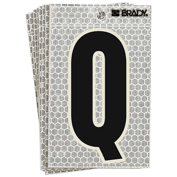 Letter Label, Adhesive Type Permanent Adhesive, Application General Identification, APWA Compliant Color No, Background Color Silver, Character Color Black/Green, Character Color Gradient Solid Color, Character Height 5 in, Character Outline Color Not Applicable, Character Type Letters, Characters Included Q, Die Cut Yes, Embossed No, Font Archivo Narrow, Includes (10) Labels, Indoor/Outdoor Usage Indoor/Outdoor, Letter Casing Uppercase, Material Retroreflective Sheeting