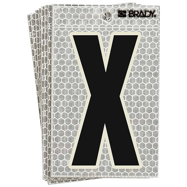 Letter Label, Adhesive Type Permanent Adhesive, Application General Identification, APWA Compliant Color No, Background Color Silver, Character Color Black/Green, Character Color Gradient Solid Color, Character Height 5 in, Character Outline Color Not Applicable, Character Type Letters, Characters Included X, Die Cut Yes, Embossed No, Font Archivo Narrow, Includes (10) Labels, Indoor/Outdoor Usage Indoor/Outdoor, Letter Casing Uppercase, Material Retroreflective Sheeting
