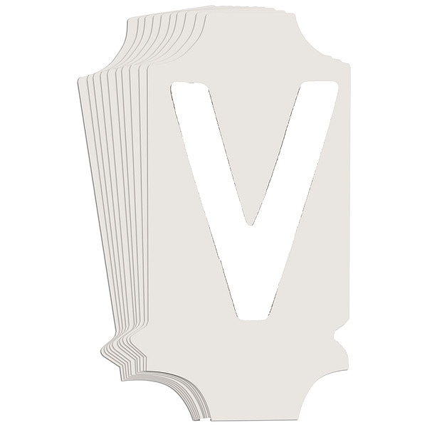 Letter Label, Adhesive Type Permanent Adhesive, Application General Identification, APWA Compliant Color No, Background Color Not Applicable, Character Color White, Character Color Gradient Solid Color, Character Height 1 in, Character Outline Color Not Applicable, Character Type Letters, Characters Included V, Die Cut Yes, Embossed No, Font Gothic, Includes (10) Labels, Indoor/Outdoor Usage Indoor/Outdoor, Letter Casing Uppercase, Material Polyester, Meets USCG Registration Guidelines No