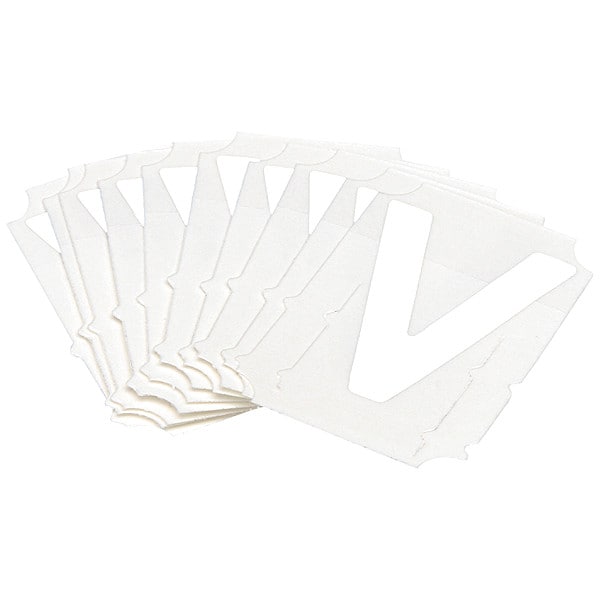 Letter Label, Adhesive Type Permanent Adhesive, Application General Identification, APWA Compliant Color No, Background Color Not Applicable, Character Color White, Character Color Gradient Solid Color, Character Height 2 in, Character Outline Color Not Applicable, Character Type Letters, Characters Included V, Die Cut Yes, Embossed No, Font Gothic, Includes (10) Labels, Indoor/Outdoor Usage Indoor/Outdoor, Letter Casing Uppercase, Material Polyester, Meets USCG Registration Guidelines No