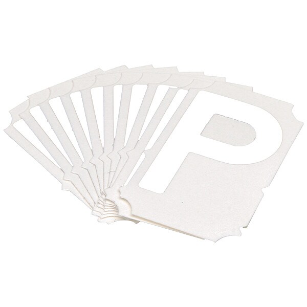 Letter Label, Adhesive Type Permanent Adhesive, Application General Identification, APWA Compliant Color No, Background Color Not Applicable, Character Color White, Character Color Gradient Solid Color, Character Height 2 in, Character Outline Color Not Applicable, Character Type Letters, Characters Included P, Die Cut Yes, Embossed No, Font Gothic, Includes (10) Labels, Indoor/Outdoor Usage Indoor/Outdoor, Letter Casing Uppercase, Material Polyester, Meets USCG Registration Guidelines No