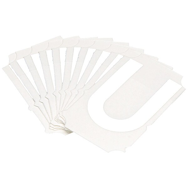 Letter Label, Adhesive Type Permanent Adhesive, Application General Identification, APWA Compliant Color No, Background Color Not Applicable, Character Color White, Character Color Gradient Solid Color, Character Height 2 in, Character Outline Color Not Applicable, Character Type Letters, Characters Included U, Die Cut Yes, Embossed No, Font Gothic, Includes (10) Labels, Indoor/Outdoor Usage Indoor/Outdoor, Letter Casing Uppercase, Material Polyester, Meets USCG Registration Guidelines No