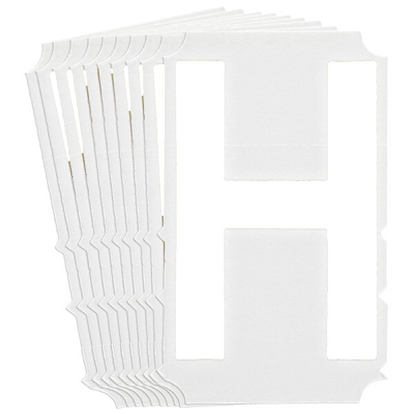 Letter Label, Adhesive Type Permanent Adhesive, Application General Identification, APWA Compliant Color No, Background Color Not Applicable, Character Color White, Character Color Gradient Solid Color, Character Height 3 in, Character Outline Color Not Applicable, Character Type Letters, Characters Included H, Die Cut Yes, Embossed No, Font Gothic, Includes (10) Labels, Indoor/Outdoor Usage Indoor/Outdoor, Letter Casing Uppercase, Material Polyester, Meets USCG Registration Guidelines No