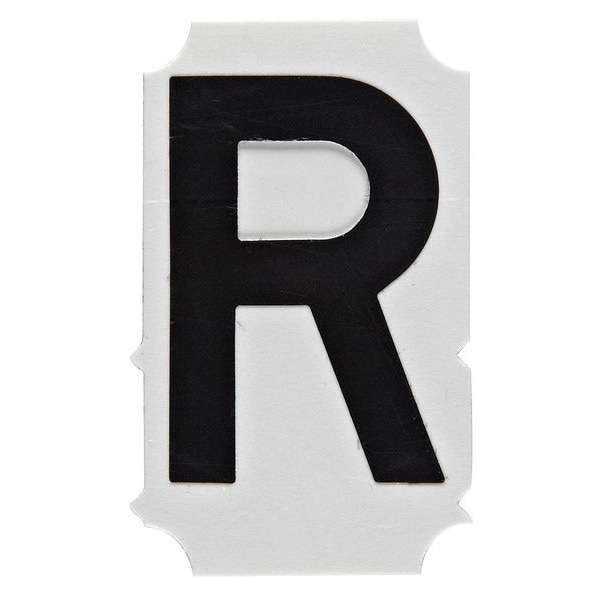 Letter Label, Adhesive Type Permanent Adhesive, Application General Identification, APWA Compliant Color No, Background Color White, Character Color Black, Character Color Gradient Solid Color, Character Height 4 in, Character Outline Color Not Applicable, Character Type Letters, Characters Included R, Die Cut Yes, Embossed No, Font Gothic, Includes (10) Labels, Indoor/Outdoor Usage Indoor/Outdoor, Letter Casing Uppercase, Material Polyester, Meets USCG Registration Guidelines No