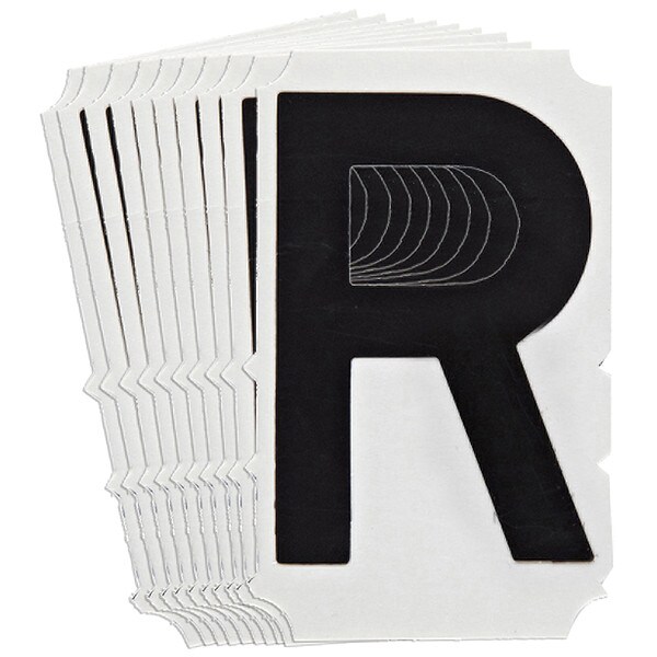 Letter Label, Adhesive Type Permanent Adhesive, Application General Identification, APWA Compliant Color No, Background Color Not Applicable, Character Color Black, Character Color Gradient Solid Color, Character Height 4 in, Character Outline Color Not Applicable, Character Type Letters, Characters Included R, Die Cut Yes, Embossed No, Font Gothic, Includes (10) Labels, Indoor/Outdoor Usage Indoor/Outdoor, Letter Casing Uppercase, Material Polyester, Meets USCG Registration Guidelines No