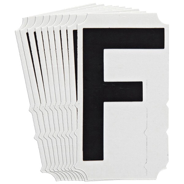 Letter Label, Adhesive Type Permanent Adhesive, Application General Identification, APWA Compliant Color No, Background Color Not Applicable, Character Color Black, Character Color Gradient Solid Color, Character Height 6 in, Character Outline Color Not Applicable, Character Type Letters, Characters Included F, Die Cut Yes, Embossed No, Font Gothic, Includes (10) Labels, Indoor/Outdoor Usage Indoor/Outdoor, Letter Casing Uppercase, Material Polyester, Meets USCG Registration Guidelines No