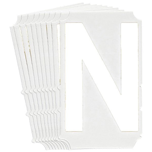Letter Label, Adhesive Type Permanent Adhesive, Application General Identification, APWA Compliant Color No, Background Color Not Applicable, Character Color White, Character Color Gradient Solid Color, Character Height 6 in, Character Outline Color Not Applicable, Character Type Letters, Characters Included N, Die Cut Yes, Embossed No, Font Gothic, Includes (10) Labels, Indoor/Outdoor Usage Indoor/Outdoor, Letter Casing Uppercase, Material Polyester, Meets USCG Registration Guidelines No
