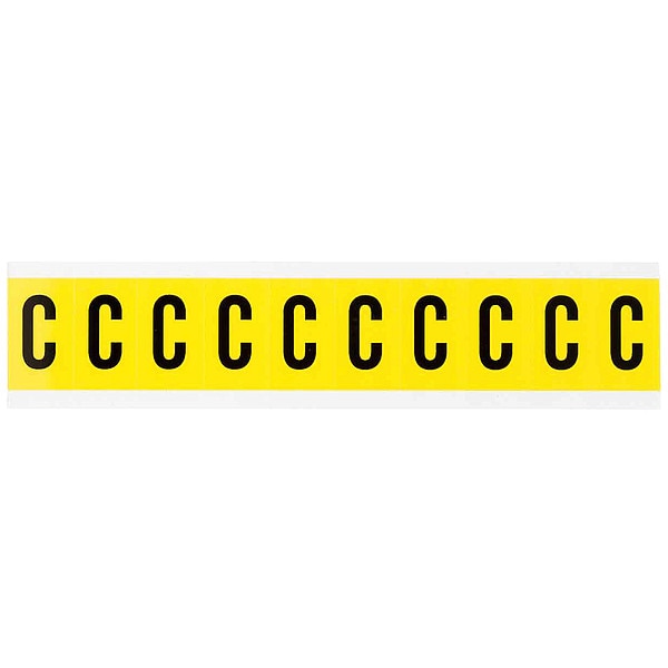 Letter Label, Adhesive Type Removable and Repositionable Adhesive, Application General Identification, Wire and Cable Labeling, APWA Compliant Color No, Background Color Yellow, Character Color Black, Character Color Gradient Solid Color, Character Height 1 in, Character Outline Color Not Applicable, Character Type Letters, Characters Included C, Die Cut Yes, Embossed No, Font Gothic, Includes (10) Labels, Indoor/Outdoor Usage Indoor Only, Letter Casing Uppercase, Material Vinyl Cloth