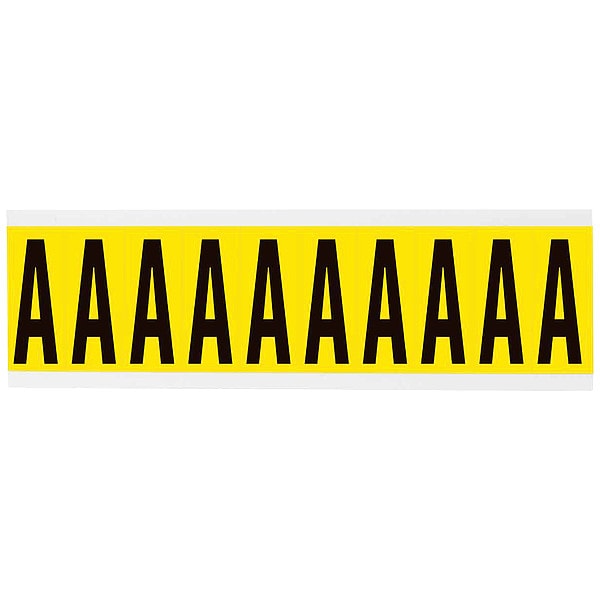 Letter Label, Adhesive Type Removable and Repositionable Adhesive, Application General Identification, Wire and Cable Labeling, APWA Compliant Color No, Background Color White, Character Color Black, Character Color Gradient Solid Color, Character Height 2 in, Character Outline Color Not Applicable, Character Type Letters, Characters Included A, Die Cut Yes, Embossed No, Font Gothic, Includes (10) Labels, Indoor/Outdoor Usage Indoor Only, Letter Casing Uppercase, Material Vinyl Cloth