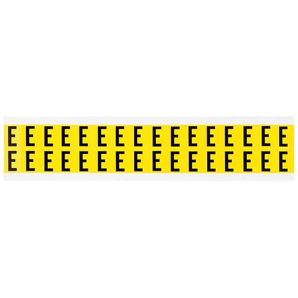 Letter Label, Adhesive Type Removable and Repositionable Adhesive, Application General Identification, Wire and Cable Labeling, APWA Compliant Color No, Background Color Yellow, Character Color Black, Character Color Gradient Solid Color, Character Height 5/8 in, Character Outline Color Not Applicable, Character Type Letters, Characters Included E, Die Cut Yes, Embossed No, Font Gothic, Includes (32) Labels, Indoor/Outdoor Usage Indoor Only, Letter Casing Uppercase, Material Vinyl Cloth