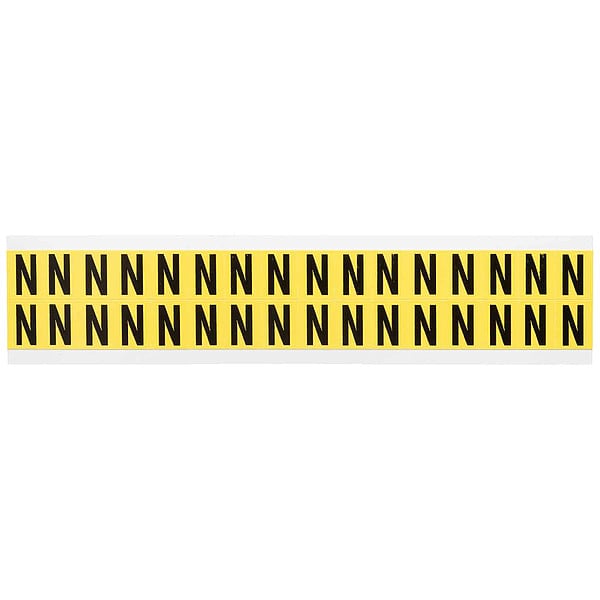Letter Label, Adhesive Type Removable and Repositionable Adhesive, Application General Identification, Wire and Cable Labeling, APWA Compliant Color No, Background Color Yellow, Character Color Black, Character Color Gradient Solid Color, Character Height 5/8 in, Character Outline Color Not Applicable, Character Type Letters, Characters Included N, Die Cut Yes, Embossed No, Font Gothic, Includes (32) Labels, Indoor/Outdoor Usage Indoor Only, Letter Casing Uppercase, Material Vinyl Cloth