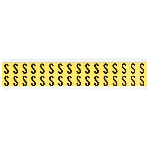 Letter Label, Adhesive Type Removable and Repositionable Adhesive, Application General Identification, Wire and Cable Labeling, APWA Compliant Color No, Background Color Yellow, Character Color Black, Character Color Gradient Solid Color, Character Height 5/8 in, Character Outline Color Not Applicable, Character Type Letters, Characters Included S, Die Cut Yes, Embossed No, Font Gothic, Includes (32) Labels, Indoor/Outdoor Usage Indoor Only, Letter Casing Uppercase, Material Vinyl Cloth