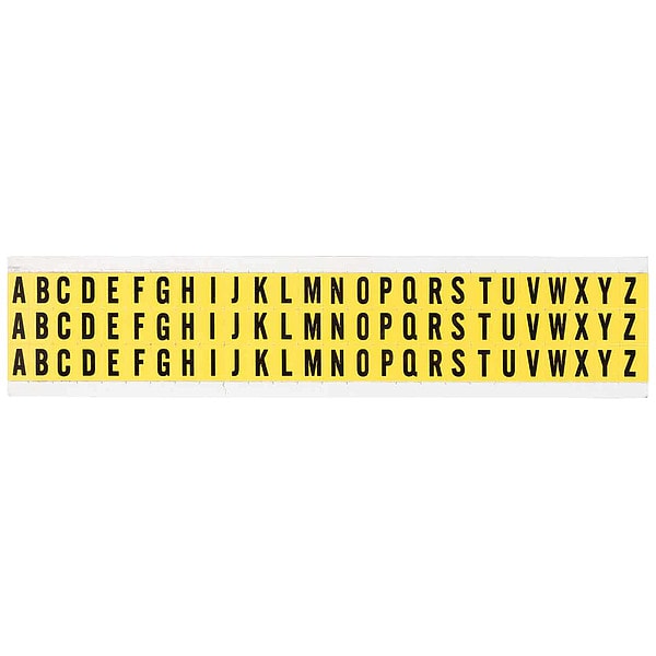 Letter Label Set, Adhesive Type Removable and Repositionable Adhesive, Application General Identification, Wire and Cable Labeling, APWA Compliant Color No, Background Color Yellow, Character Color Black, Character Color Gradient Solid Color, Character Height 3/8 in, Character Outline Color Not Applicable, Character Type Letters, Characters Included A to Z, Die Cut Yes, Embossed No, Font Gothic, Includes (10) Labels, Indoor/Outdoor Usage Indoor Only, Letter Casing Uppercase, Material Vinyl