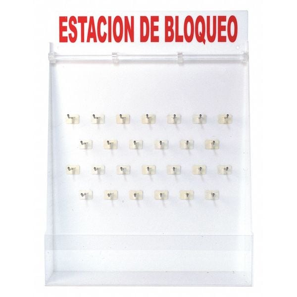 Lockout Board, Cable Lockouts Included Not Applicable, Cover Type Open Front, Electrical Lockouts Included Not Applicable, Filled No, Number of Hasps Included 0, Number of Lockouts Included 1, Number of Padlocks Included 12, Number of Tags Included 0, Visibility Inside Clear Door/Window, Language Spanish, Mount Type Wall Mount, Background Color White, Includes Spanish Lockout Board, Legend Estacion De Bloqueo, Legend Type Text, Material Polystyrene, Mounting Location Wall