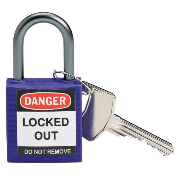 Lockout Padlock, Keyed Different, Nylon, Purple, 1 in Shackle Height, 1 3/16 in Body Width