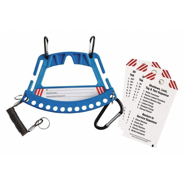 Lockout Station, Cable Lockouts Included Not Applicable, Cover Type Open Front, Electrical Lockouts Included Not Applicable, Filled No, Number of Hasps Included 0, Number of Lockouts Included 7, Number of Padlocks Included 0, Number of Tags Included 3, Visibility Inside None, Language English, French, Spanish, Mount Type Not Applicable, Background Color Blue, Includes (1) Carrier with (3) Clips, (3) Lo Procedure Template Tags, Key Holder