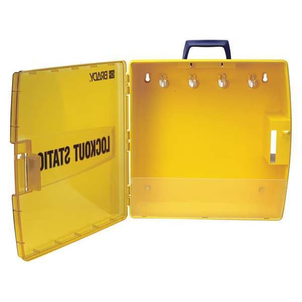 Lockout Station, Cable Lockouts Included Not Applicable, Cover Type Closed, Electrical Lockouts Included Not Applicable, Filled No, Number of Hasps Included 0, Number of Lockouts Included 0, Number of Padlocks Included 0, Number of Tags Included 0, Visibility Inside None, Language English, Mount Type Wall Mount, Background Color Yellow, Includes (1) Handle, (1) Panel, Includes Mounting Hardware Yes, Legend Lockout Station, Legend Type Text, Material Polypropylene, Mounting Location Wall