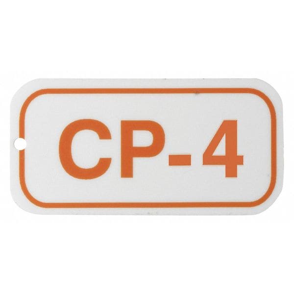 Lockout Tag, Front Side Legend CP-4, Header None/ No Header, Language English, Legend Type Text, Mount Type Adhesive Backing, Number of Printed Sides 1, Overall Height 1 1/2 in, Overall Width 3 in, Reverse Side Legend Not Applicable, Sign Background Color White, Sign Material Polystyrene, Sign Out Sections Not Applicable, Signage Type Tag, Write-On Surface No, For Location Indoor, Outdoor, For Use With Control Panel, Grommet Material No Grommet, Hole Diameter 1/4 in, Includes (25) Tags