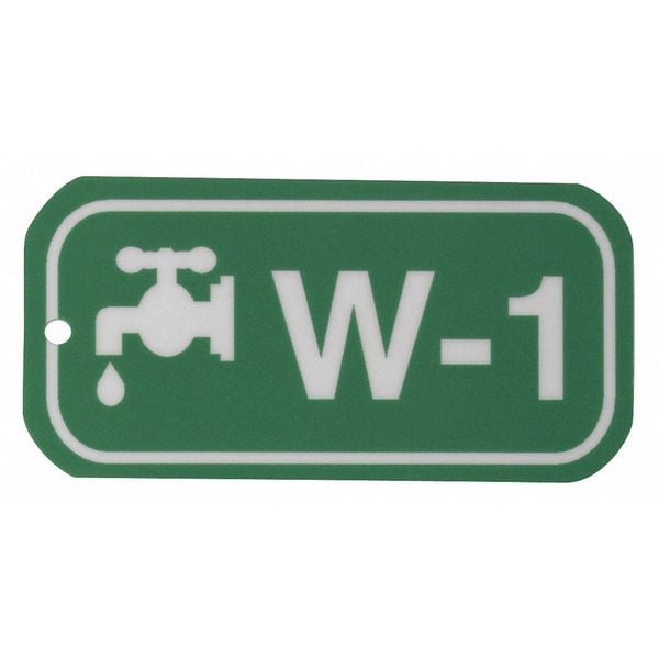 Lockout Tag, Front Side Legend W-1, Header None/ No Header, Language English, Legend Type Text, Mount Type Holes, Number of Printed Sides 1, Overall Height 1 1/2 in, Overall Width 3 in, Reverse Side Legend Not Applicable, Sign Background Color Green, Sign Material Polystyrene, Sign Out Sections Not Applicable, Signage Type Tag, Write-On Surface No, For Location Indoor, Outdoor, Grommet Material No Grommet, Hole Diameter 1/4 in, Includes (25) Tags, Includes Ties Yes, Legend Color White