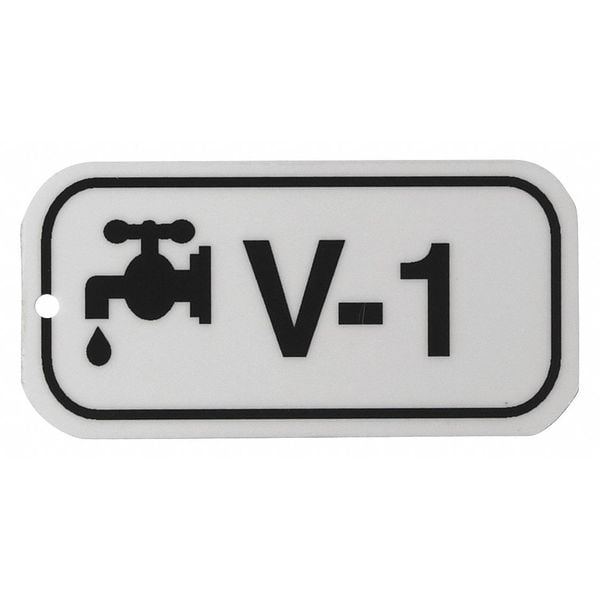 Lockout Tag, Front Side Legend V-1, Header None/ No Header, Language English, Legend Type Text, Mount Type Holes, Number of Printed Sides 1, Overall Height 1 1/2 in, Overall Width 3 in, Reverse Side Legend Not Applicable, Sign Background Color White, Sign Material Polystyrene, Sign Out Sections Not Applicable, Signage Type Tag, Write-On Surface No, For Location Indoor, Outdoor, For Use With Valve, Grommet Material No Grommet, Hole Diameter 1/4 in, Includes (25) Tags, Includes Ties Yes