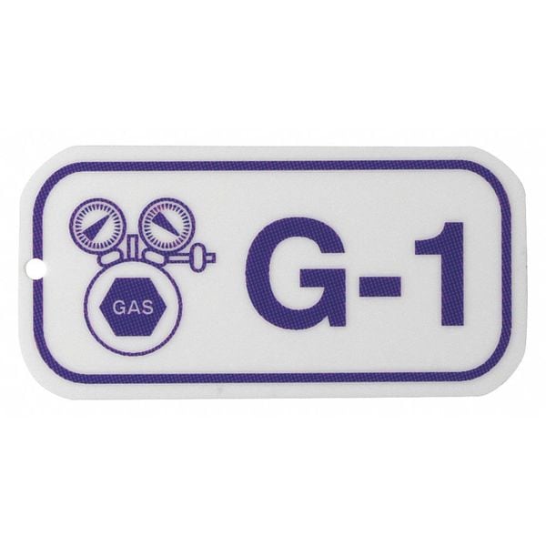 Lockout Tag, Front Side Legend G-1, Header None/ No Header, Language English, Legend Type Text, Mount Type Holes, Number of Printed Sides 1, Overall Height 1 1/2 in, Overall Width 3 in, Reverse Side Legend Not Applicable, Sign Background Color White, Sign Material Polystyrene, Sign Out Sections Not Applicable, Signage Type Tag, Write-On Surface No, For Location Indoor, Outdoor, Grommet Material No Grommet, Hole Diameter 1/4 in, Includes (25) Tags, Includes Ties Yes, Legend Color Purple