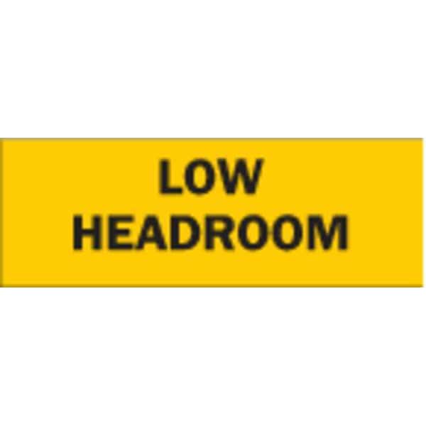 Caution Sign, Sign Subject Matter Overhead Clearance, Height 3-1/2 In., Width 10 In., Sign Material Polyester, Header No Header, Legend Low Headroom, Printed Language English, Sign Shape Rectangle