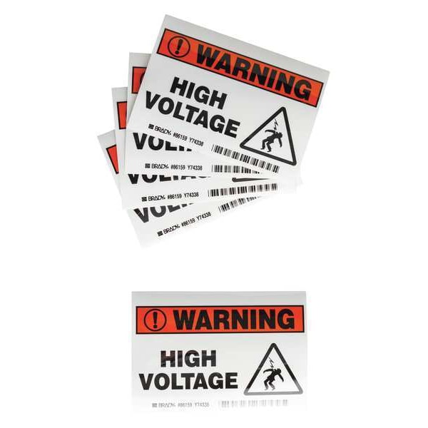Machine/Equipment Label, Horizontal Rectangle, Number of Printed Sides 1, English, Sign Legend High Voltage, Sign Legend Style Symbol and Text, Package Quantity 5