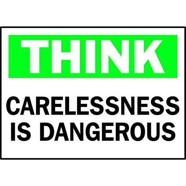 Label, Horizontal Rectangle, Number of Printed Sides 1, English, Sign Legend CARELESSNESS IS DANGEROUS, Sign Legend Style Text, Package Quantity 5