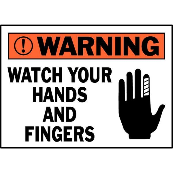 Machine/Equipment Label, Horizontal Rectangle, Number of Printed Sides 1, English, Sign Legend Watch Your Hands And Fingers, Sign Legend Style Text, Package Quantity 5