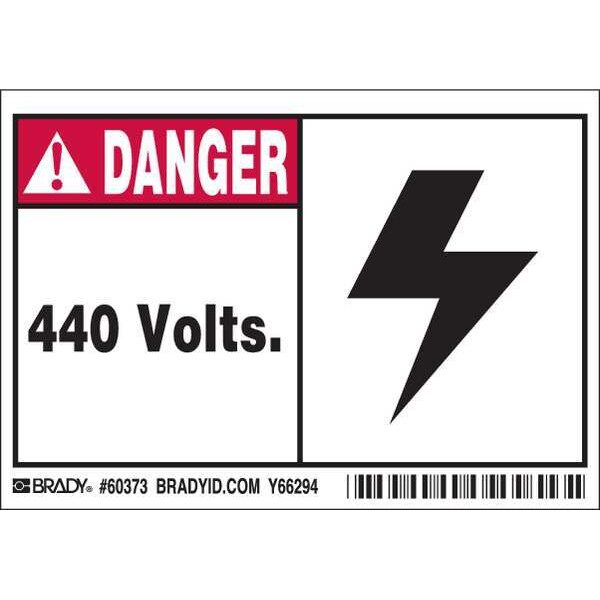 Machine/Equipment Label, Horizontal Rectangle, Number of Printed Sides 1, English, Sign Legend 440 Volts., Sign Legend Style Symbol and Text