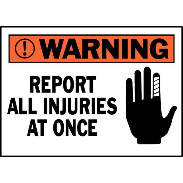 Machine/Equipment Label, Report All Injuries At Once, 5 in H x, 5 in W, Polyester