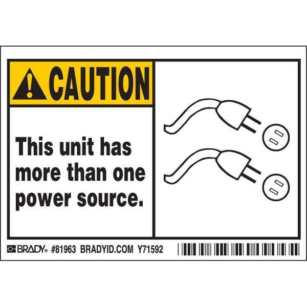 Machine/Equipment Label, Horizontal Rectangle, Number of Printed Sides 1, English, Sign Legend This unit has more than one power source., Sign Legend Style Symbol and Text, Package Quantity 5