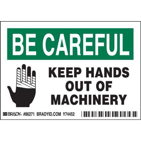 Machine/Equipment Label, Horizontal Rectangle, Number of Printed Sides 1, English, Sign Legend Keep Hands Out Of Machinery, Sign Legend Style Symbol and Text, Package Quantity 5