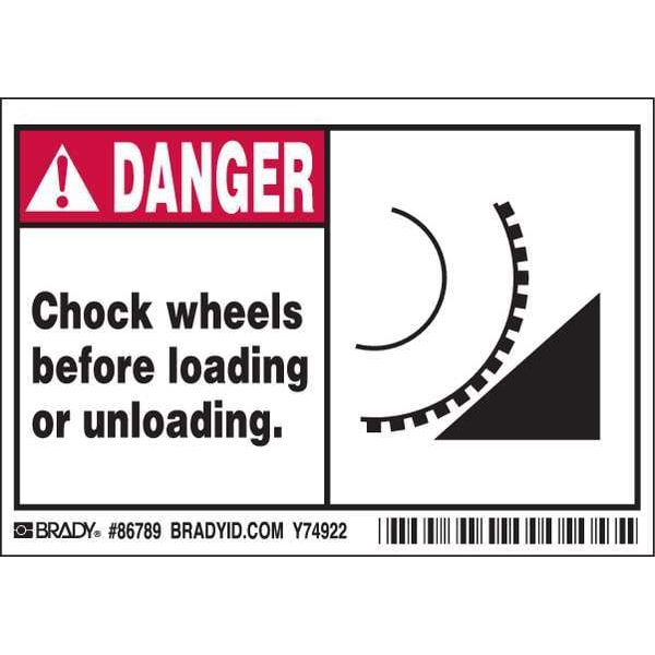 Sign, Horizontal Rectangle, Number of Printed Sides 1, English, Sign Legend Chock wheels before loading or unloading., Sign Legend Style Symbol and Text, Package Quantity 5