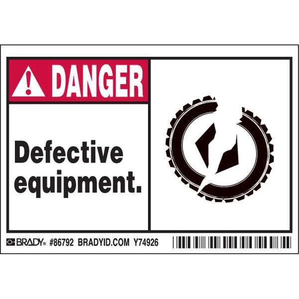 Machine/Equipment Label, Horizontal Rectangle, Number of Printed Sides 1, English, Sign Legend Defective equipment., Sign Legend Style Symbol and Text, Package Quantity 5