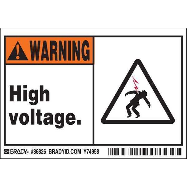 Machine/Equipment Label, Horizontal Rectangle, Number of Printed Sides 1, English, Sign Legend High Voltage, Sign Legend Style Symbol and Text, Package Quantity 5