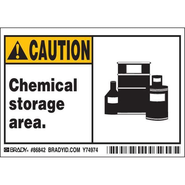 Machine/Equipment Label, Horizontal Rectangle, Number of Printed Sides 1, English, Sign Legend Chemical storage area., Sign Legend Style Symbol and Text, Package Quantity 5