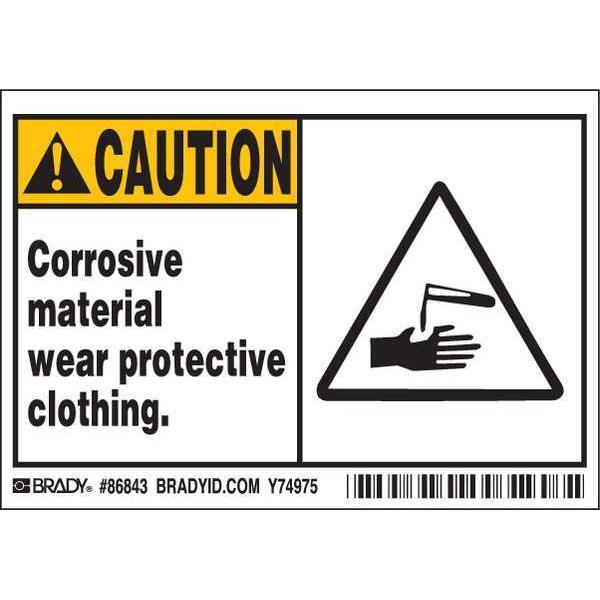 Label, Horizontal Rectangle, Number of Printed Sides 1, English, Sign Legend Corrosive material wear protective clothing., Sign Legend Style Symbol and Text, Package Quantity 5