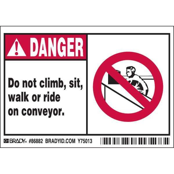 Label, Horizontal Rectangle, Number of Printed Sides 1, English, Sign Legend Do not climb, sit, walk or ride on conveyor., Sign Legend Style Symbol and Text, Package Quantity 5