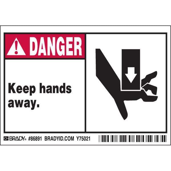 Machine/Equipment Label, Horizontal Rectangle, Number of Printed Sides 1, English, Sign Legend Keep Hands Away., Sign Legend Style Symbol and Text, Package Quantity 5