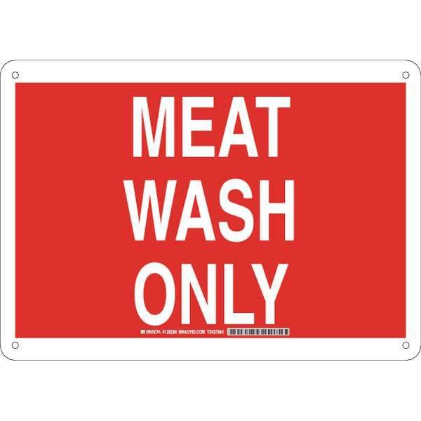 Facility Sign, Sign Subject Matter Facility, Height 10 In., Width 14 In., Sign Material Plastic, Sign Mounting Style With Mounting Holes, Header No Header, Legend Meat Wash Only, Printed Language English, Sign Shape Rectangle