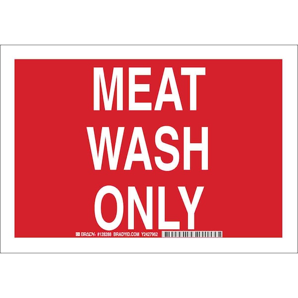 Facility Sign, Sign Subject Matter Facility, Height 10 In., Width 14 In., Sign Material Polyester, Sign Mounting Style Adhesive Surface, Header No Header, Legend Meat Wash Only, Printed Language English, Sign Shape Rectangle